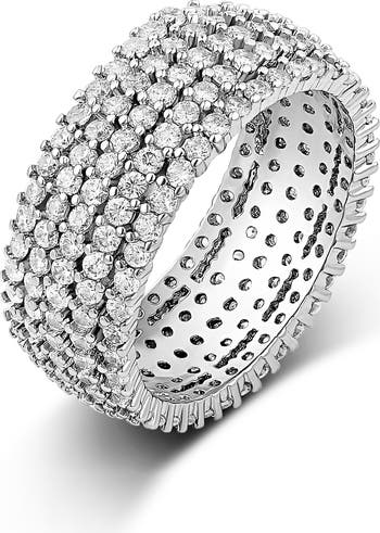 Stacks of pavé cubic zirconia encircle this cigar band ring in never-ending sparkle.