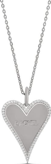 Lend sparkly personalization to your stack with this heart-shaped pendant necklace centered with a name of up to six characters.