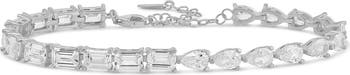 You'll love the shimmer of this classic tennis bracelet lined with both emerald-cut and pear-cut cubic zirconia.