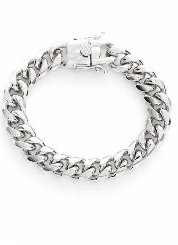 This chunky Cuban chain bracelet brings bold polish to casual and night-out looks.