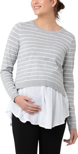 Through the week and on the weekend, the Sia Nursing Knit will be on high rotation! Providing the perfect fit through all stages including post-pregnancy, this staple piece features a yarn dyed stripe and full-length sleeves. The knit and woven combination top also features easy, discreet nursing access. Relaxed fit Fully fashion knit with woven skirt and jersey bodice Round neckline Hidden nursing access Long sleeve Nursing Main: 72% Viscose, 28% Nylon outer Skirt: 100% Viscose Bodice Lining: 94% Viscose, 6% Elastane Length: 78cm (size small)