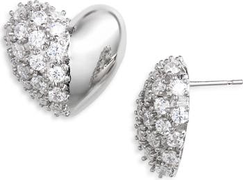 Inspired by glam rock and hardware-heavy punk influences, Justine Clenquet serves up swoon-worthy heart-shaped earrings plated in palladium and illuminated in crystals.