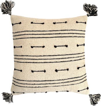 Intricate thread work making up a gorgeous weave and plush tassels on each side are a must add to your home. Available in shades of black and white, it can be paired with just about anything. Handmade by artisans, there might be natural variations making each one truly unique.