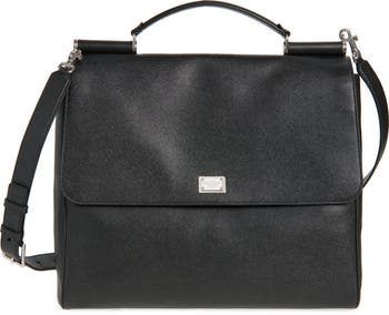 The label forgoes their usual drama for a dose of low-key luxury with this minimalist messenger bag crafted from finely grained Italian calfskin. A logo-engraved plaque offers a welcome bit of branding.