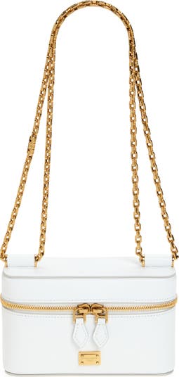 The infamous Italian fashion house draws inspiration from the structured silhouettes of vintage vanity cases with this boxy bag crafted from smooth calfskin leather. It even features a mirror on the inside for on-the-go beauty touch-ups.