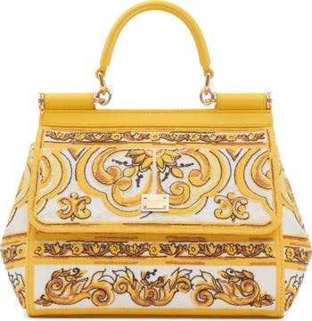 Vibrant embroidery inspired by hand-painted majolica tiles emboldens this signature satchel crafted of cotton canvas and trimmed with smooth leather. A top handle and removable crossbody strap offer carrying options for the look.