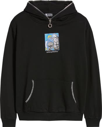 Turn your OOTD into a walking work of art with the embroidered graphic of this hoodie cut for a comfortingly slouchy fit from soft, warm cotton fleece.