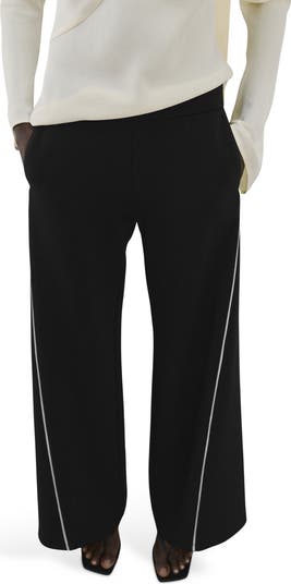 Angled piping stripes the sides of these knit wide-leg pants fashioned with side-seam pockets and comfy elastic in the back waist.
