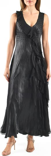 From suitcase to sensational entrance, this wrinkle-resistant combo of charmeuse and chiffon is cut into a floor-grazing gown that will never show its mileage.