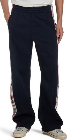 Striped grosgrain side tape with snaps and front pintucks accentuate the comfortable wide-leg cut of these '70s-inspired track pants.