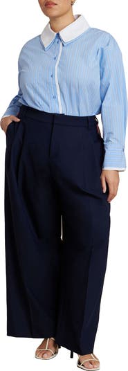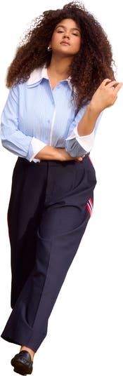 These side stripe trousers bring a varsity edge to tailored dressing. Front pleats and a high-rise waist create a refined profile with effortless comfort and easy stretch.