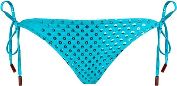These sparkling tie-side bikini bottoms promise to brighten summer days. The adjustable ties feature Vilebrequin-engraved tips for a touch of elegance while stretch polyamide and elastane offer the perfect fit.