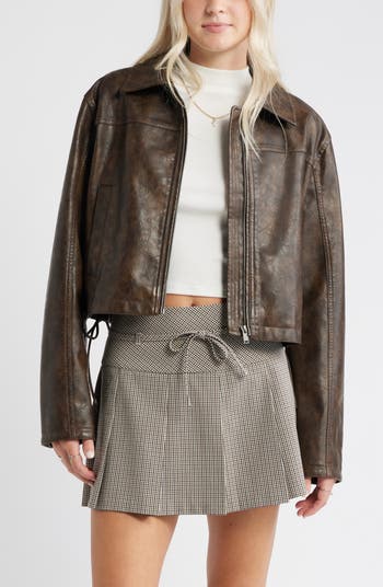 Side ties bring a flirty element to this edgy moto jacket fashioned from sleek faux-leather jacket.