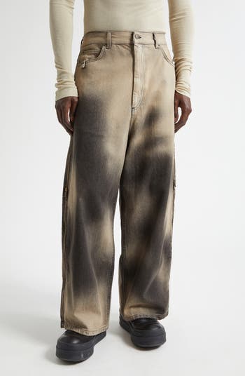 A deep stained wash gives a raw and unpolished aesthetic to these nonstretch denim jeans built with full-length zippers down the sides letting you control the shape.