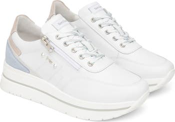 Shimmering studs and contrast panels at the heel amplify the contemporary charm of this lace-up wedge sneaker.
