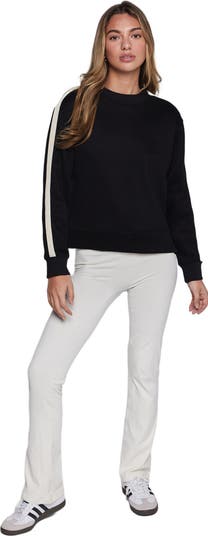 Our crewneck sweatshirt with a side tape detail is an everyday elevated essential to your wardrobe. Wear it to and from practice and pair it with your favorite pants. Made in our irresistibly soft fleece scuba fabric. Features slits on the sides and a minimal embroidered logo at the back.