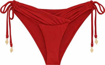 Siena brings the heat in a warm red shimmer fabric that glows under the sun. Designed with a slightly high-waisted fit and a flattering V-cut front, this silhouette enhances and sculpts while ruched sides ensure all-day comfort.