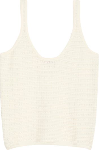 Fresh cotton yarns and an open-knit design dial up the warm-weather charm of this sweater-style tank.