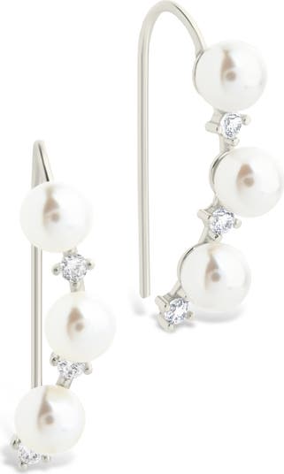 A threader earring features alternating cubic zirconia and cultured pearls to bring elegant shimmer to your lobe.