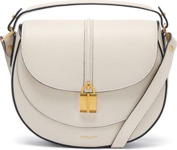 The London-based label's commitment to impeccable craftsmanship shines through the masterful handmade construction of this richly grained leather saddle bag suspended with a brushed-finish padlock.
