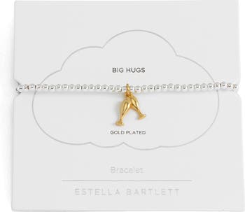 A champagne glass charm lends a congratulatory feel to this shiny beaded stretch bracelet ready to celebrate the day.