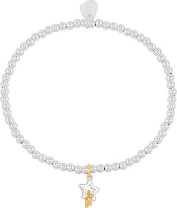 Send lasting birthday wishes with this shiny beaded stretch bracelet anchored with a two-tone star charm.