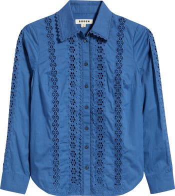 Add a boho beat to your button-up collection with a cotton option served with sweet stitchwork.