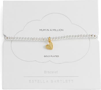 Show your gratitude for mom with this beaded stretch bracelet accented with a dangling heart charm.