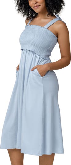The smocked style you love with the breastfeeding functionality (and pockets!) you need. This breezy nursing & maternity dress features a super-soft, cotton-blend jersey fabric with a stretchy, smocked bodice that lifts to reveal an inner layer for easy pull-aside feeding. With cute bows at the straps, a great drape, and the ideal midi length, the Sienna is the perfect maternity photoshoot dress, a dream nursing dress, and the one you’ll reach for long after your breastfeeding days are over!