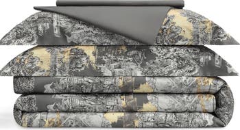 - The duvet cover is crafted in a luxurious combination of antique silver and noble gold hues and decorated with a monochrome toile de Jouy print.