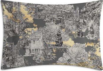 - The pillowcase is crafted in a luxurious combination of antique silver and noble gold hues and decorated with a monochrome toile de Jouy print.