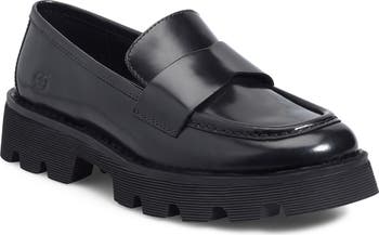 A chunky sole with recessed lugs boosts this classic penny loafer detailed with moc-toe stitching and a subtle debossed logo at the heel.