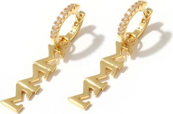 Sigma Sigma Sigma Greek Letter Huggie + Charm Earrings