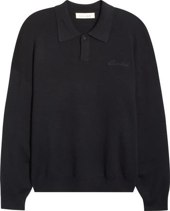 A relaxed silhouette framed by dropped shoulders nods to the '90s inspiration of this polo sweater knit from merino wool yarns.