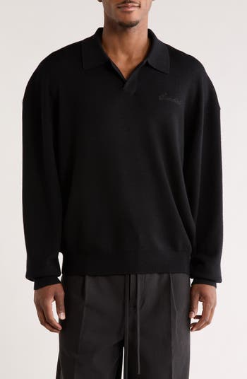 A relaxed silhouette framed by dropped shoulders nods to the '90s inspiration of this polo sweater knit from merino wool yarns.