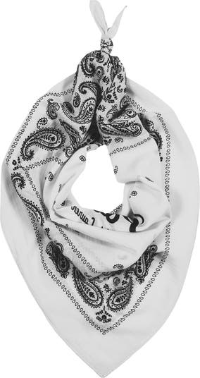 Put a Western flourish on your look with this square bandana-patterned scarf knotted jauntily around your neck.