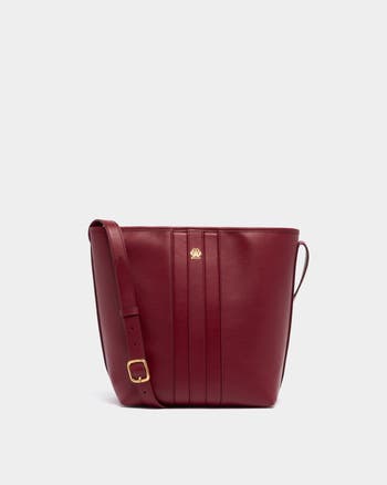 The timeless silhouette of this Signature bucket bag is crafted from finest calfskin in Ruby Red, enriched by a gold-tone Bally Crest and a leather inlay Ribbon.