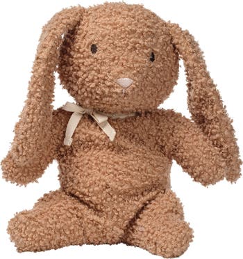 Meet Honey. She is the cutest little bunny made in a taupe colored textured boucle. Her floppy ears are 6 ½ inches long and she is 11 inches tall. Her charcoal colored eyes are embroidered and she wears a white ribbon around her neck. She is sure to be one of your little one’s favorite plush toys and makes a perfect gift for any occasion. She is safe for all ages, including babies.