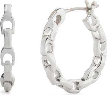 A repeated C logo shapes these hoop earrings that are finished in a high polish so they gleam both day and night.