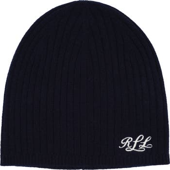 Knit from pure cashmere yarns for a luxe feel, this ribbed beanie is branded by an embroidered monogram.