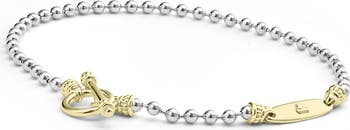 Sterling silver constrasts with 18-karat gold in this ball-chain bracelet textured with signature caviar beading.
