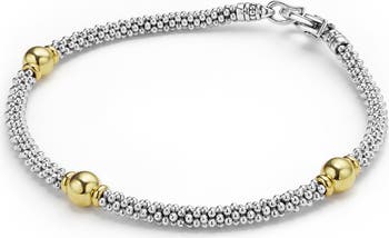 A strand of Caviar beading is stationed with contrasting beads in this high-polish rope bracelet handcrafted from sterling silver and 18-karat gold.