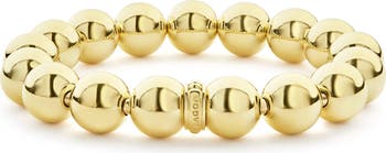 Designed to stretch for the perfect fit, this 18-karat-gold bracelet features a caviar charm that accents its glinting beads.