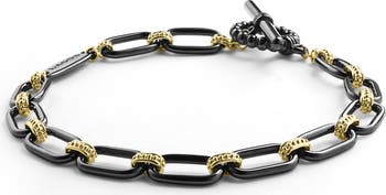 Polished black ceramic links contrast with 18-karat-gold Caviar beading in this modern chain bracelet.