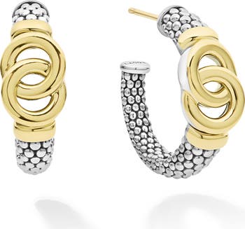Interlocking circles of 18-karat gold add extra gleam to these signature Caviar-beaded sterling silver hoop earrings.