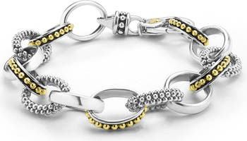 Alternating links textured with signature Caviar beading in sterling silver and 18-karat gold connect on a gleaming, handcrafted bracelet.