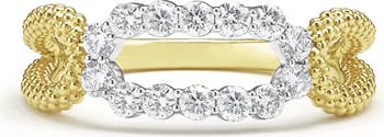 Caviar beading adds signature texture to an 18-karat-gold ring sparked with an open oval of round-cut diamonds.