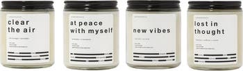 Try all four of postmodernform's signature scents: | at peace with myself - lavender + cinnamon | clear the air | - white sage + lavender | lost in thought | - balsam + saffron + clove | new vibes | - sea salt + orchid | 8oz | 226g | 50+ hour burn time | Candles from postmodernform are always 100% soy wax, 100% cotton wicks, always cruelty-free. Small-batch, handpoured in San Francisco or Raleigh, USA.