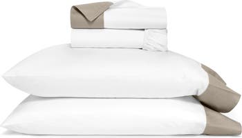 Color-blocked trim adds to the sophistication of this premium sheet set cut from Boll & Branch's signature supersoft weave from airy long-staple organic cotton.