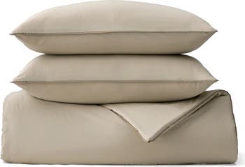 Wonderfully versatile and subtly luxurious, this comforter and shams set is woven from long-staple organic cotton that gets softer with every wash. The all-season comforter is lined with breathable cotton voile and filled with hypoallergenic recycled-polyester batting, with hidden quilt stitching to keep it in place.